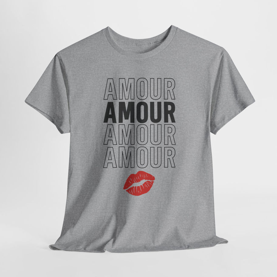 Amour Kiss Graphic Tee — Romantic French Love T-Shirt