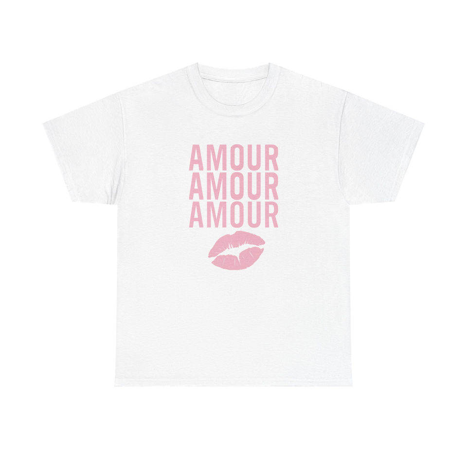 Amour Kiss Graphic Tee — Romantic Pink French Love T-Shirt