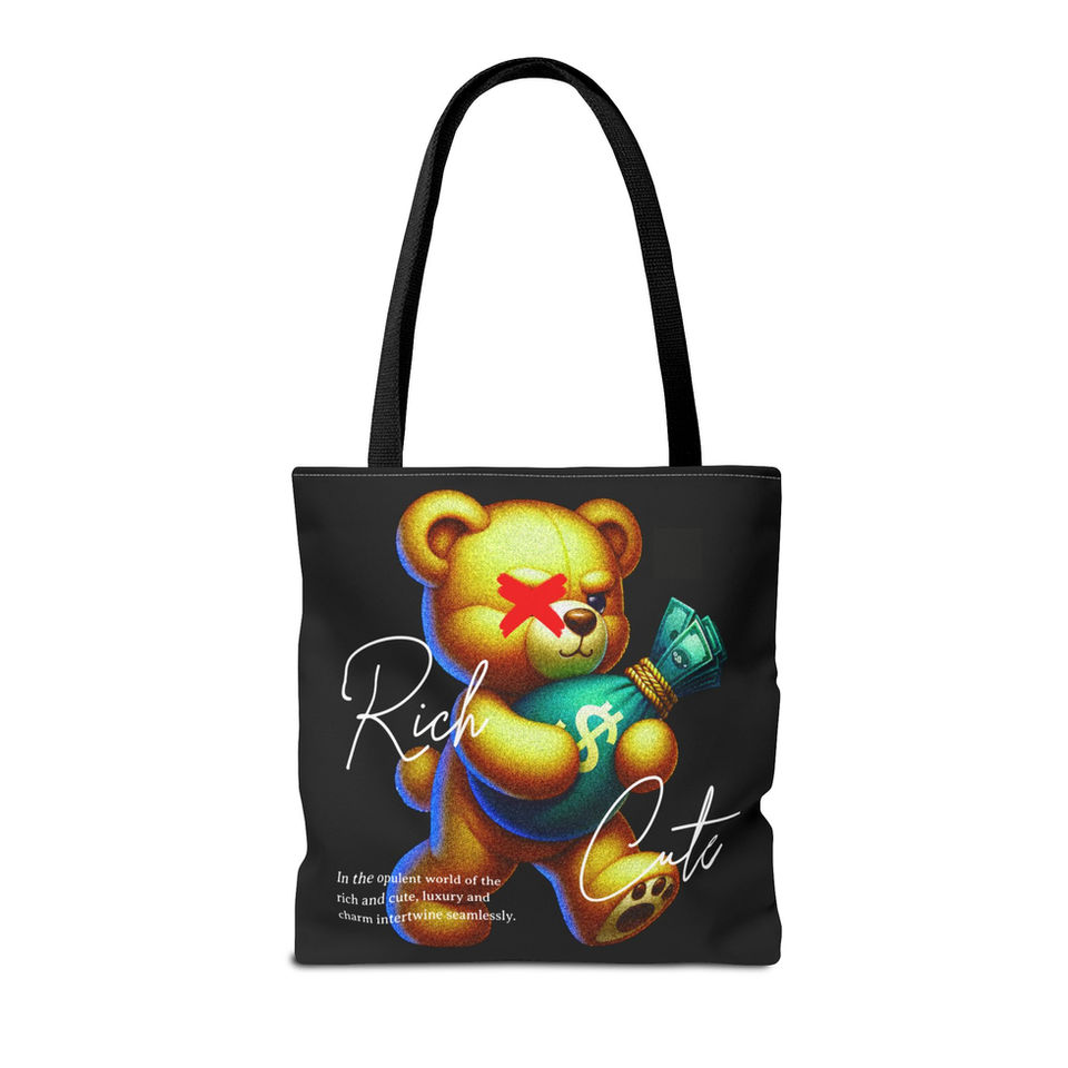 Rich Cute Bear Tote Bag — Neon Teddy Holding Cash All-Over Print